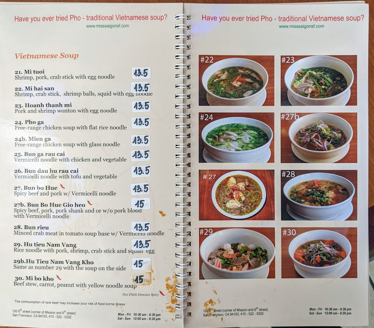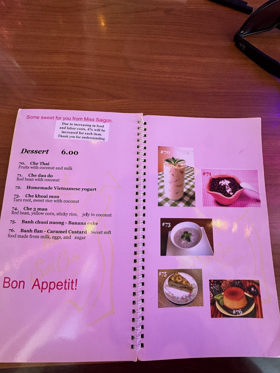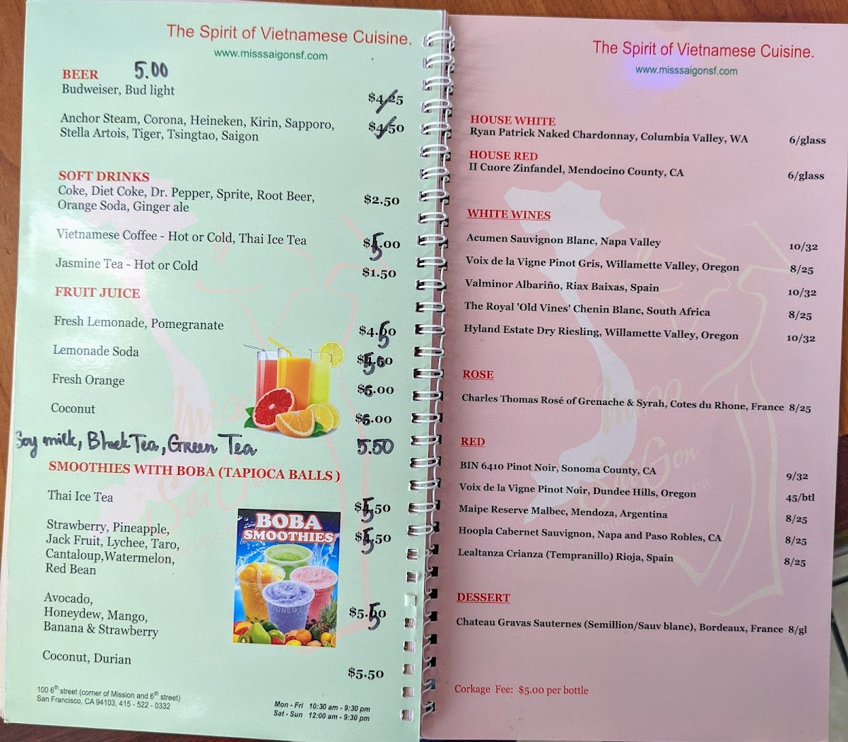The menu at Miss Saigon offers a straightforward and inviting selection of Vietnamese and Southeast Asian dishes, reflecting a casual dining experience that’s perfect for any time of day. Whether you’re settling in for a comforting bowl of pho or enjoying lighter bites, the menu balances traditional flavors with familiar, approachable dishes.